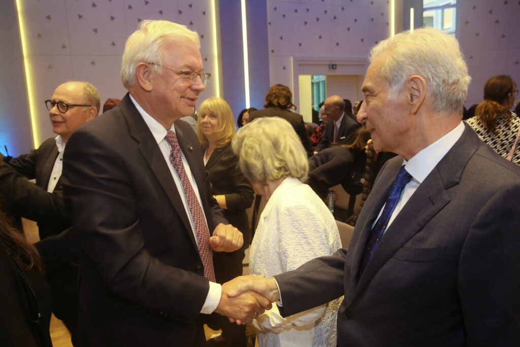 Ein Dank an Dr. Dieter Graumann, ehemaliger Präsident des Zentralrats der Juden in Deutschland und ehemaliges Vorstandsmitglied der Jüdischen Gemeinde Frankfurt, der als Laudator auf Prof. Dr. Salomon Korn eindrucksvoll die Bedeutung dieser Auszeichnung schilderte, und an Dr. Nargess Eskandari-Grünberg, Bürgermeisterin von Frankfurt am Main und Dezernentin für Diversität, Antidiskriminierung und gesellschaftlichen Zusammenhalt, für Ihre herzliche Laudatio auf Prof. Dr. Leo Latasch.