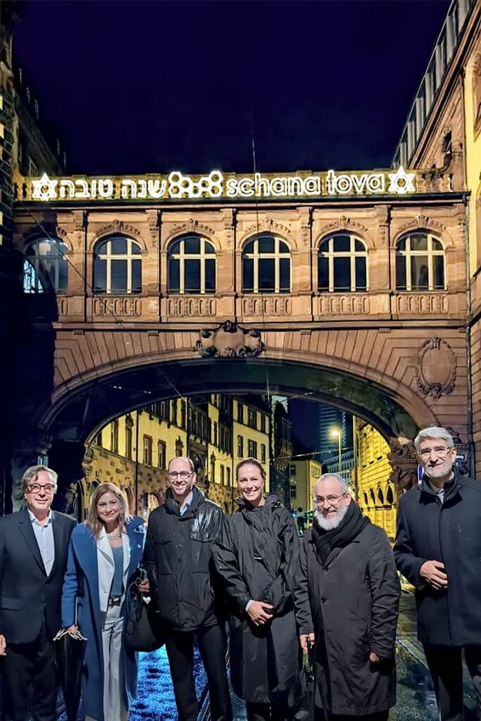 Schana tova mitten in Frankfurt: Zu Rosch HaSchana 5786 erstrahlte „Seufzerbrücke“ in der Bethmannstraße erstmals mit dem Neujahrsgruß Schana tova – über dieses sichtbare Zeichen des Respekts und der Anerkennung jüdischen Lebens in unserer Stadt haben wir uns sehr gefreut.