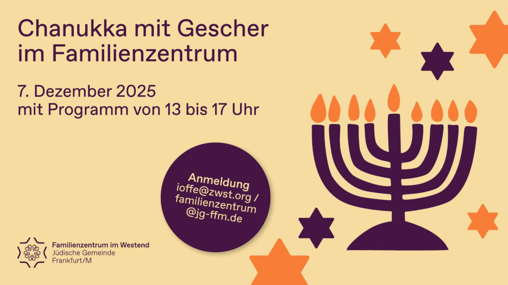 - Die Plätze sind begrenzt, eine Anmeldung im Voraus per Mail an ioffe@zwst.org sowie familienzentrum@jg-ffm.de ist erforderlich.