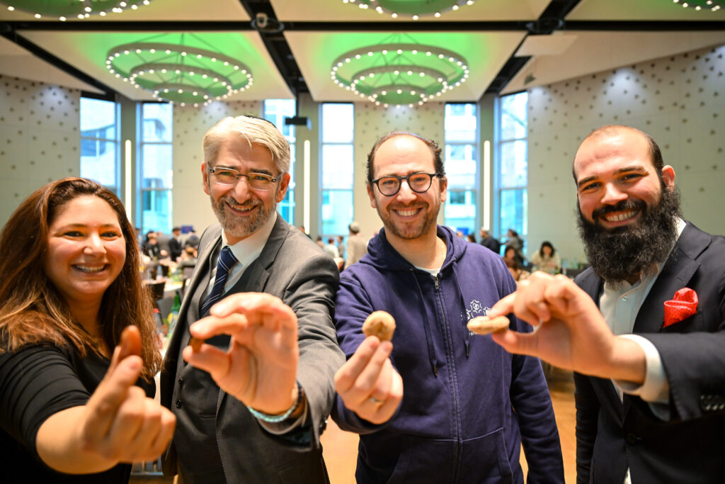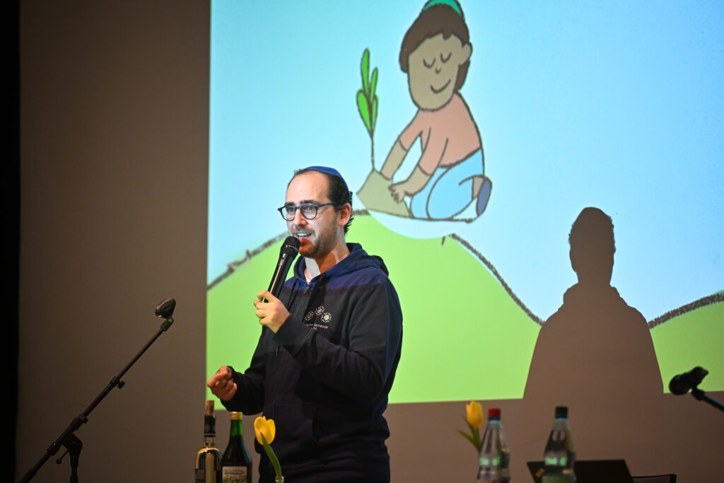 Unser Festsaal im Ignatz Bubis-Gemeindezentrum wurde an Tu’BiSchwat zu einem Ort voller Musik, Begegnung und gelebter Gemeinschaft. Rund 250 Gemeindemitglieder kamen zusammen, begrüßt von den Geigenklängen Oleksandr Darmits’, bevor Vorstandsvorsitzender Benjamin Graumann die Feier eröffnete. Der Tu‘BiSchwat-Seder wurde von Rabbiner Julien-Chaim Soussan angeleitet und von Rabbiner Elishai Zizov sowie Kantor Menachem Gunoun musikalisch begleitet.