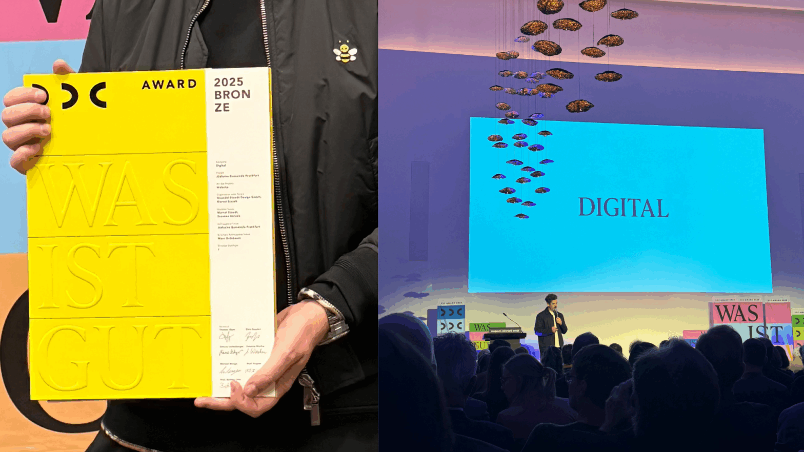 Mut zur Transformation – ausgezeichnet. Unsere Website www.jg-ffm.de wurde am 14. November 2025 vom Deutschen Design Club mit dem DDC Award 2025 „Was ist gut“ in Bronze prämiert. Die Jury würdigte unser Projekt als Beispiel für gutes Design im digitalen Raum. Wir freuen uns! MAZAL TOV!