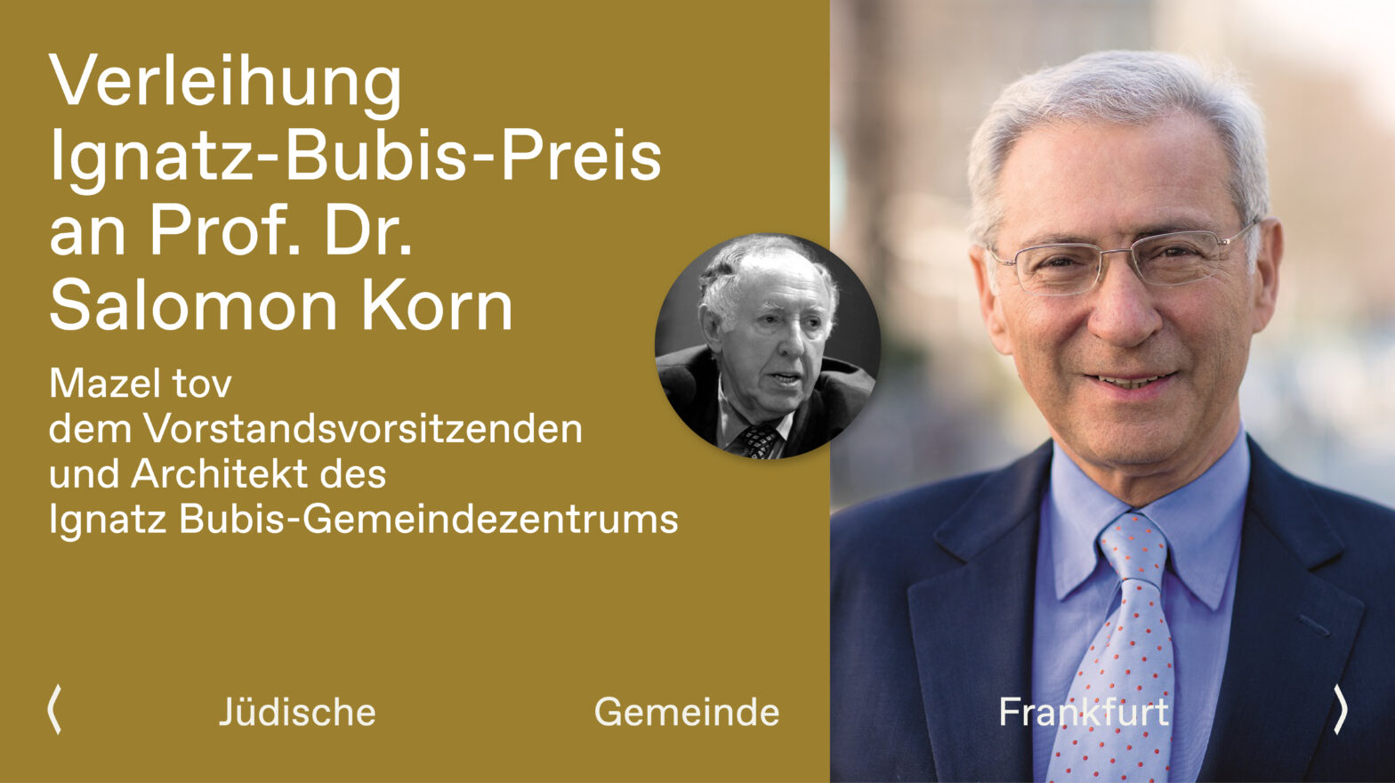 Am 12. Januar 2026, dem Geburtstag von Ignatz Bubis, sel. A., erhielt unser langjähriger Vorstandsvorsitzender und Architekt des Ignatz Bubis-Gemeindezentrums, Prof. Dr. Salomon Korn, den Ignatz Bubis-Preis der Stadt Frankfurt, verliehen durch den Oberbürgermeister Mike Josef in der Paulskirche. Dieser 2001 ins Leben gerufene Preis soll das Lebenswerk und die Persönlichkeit des Namensgebers ehren und… Prof. Dr. Salomon Korn erhält den Ignatz-Bubis-Preis weiterlesen