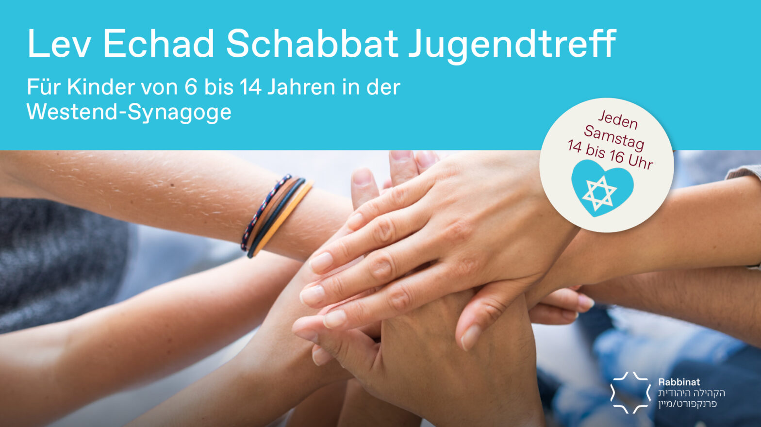 Gemeinsam beten, lernen und Spaß haben: Beim „Lev Echad“ Schabbat Jugendtreff können Kinder von 6 bis 14 Jahren gemeinsam Schabbat verbringen. Zusammen mit engagierten Madrichim erleben die Kinder jeden Samstag in der Westend-Synagoge von 14:00 bis 16:00 Uhr spaßige Peulot und genießen im Anschluss gemeinsam leckeres Essen.