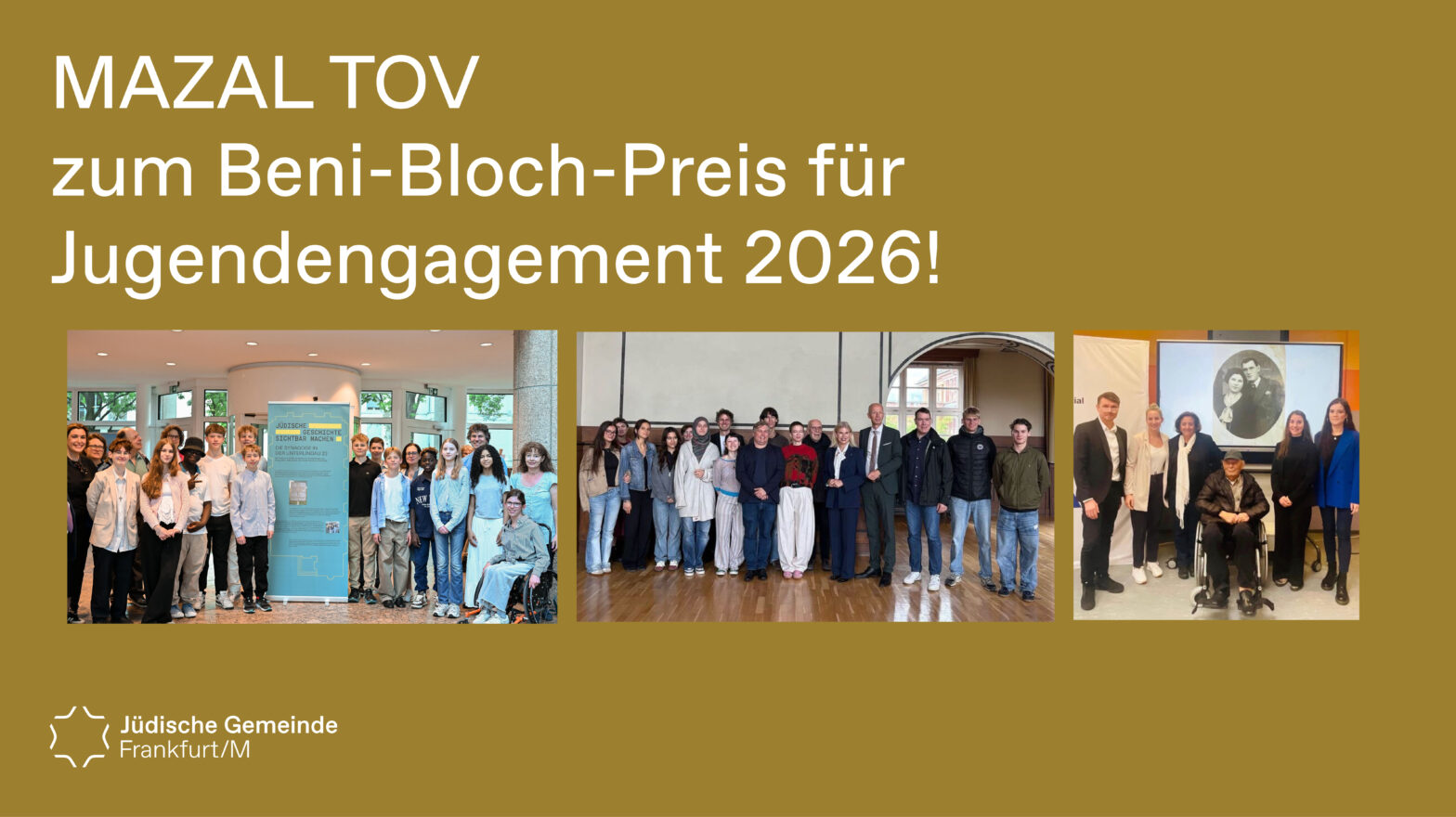 MAZAL TOV an die Preisträger des Beni-Bloch-Preises für Jugendengagement 2026! Beni Bloch, sel.A. wäre am heutigen Tag 83 Jahre alt geworden. Wir werden ihm stets ein ehrendes Andenken bewahren. Umso mehr freuen wir uns heute die Preisträger des Beni-Bloch-Preises für Jugendengagement 2026 zu verkünden. Die aus dem Vorstand der Jüdischen Gemeinde Frankfurt bestehende Jury hat… Preisträger des Beni-Bloch-Preises für Jugendengagement 2026 weiterlesen